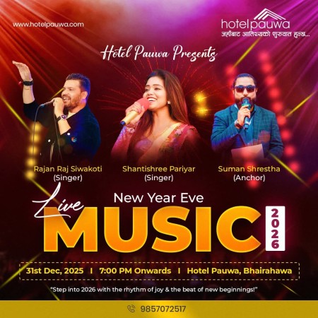 होटेल पौवा भैरहवामा अङ्ग्रेजी नयाँ वर्ष २०२६ भव्य रूपमा स्वागत गरिने